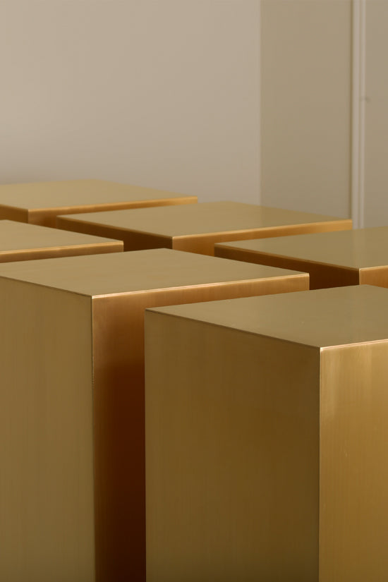 Our brass collection encapsulates all that is luxury, giving customers the opportunity to enhance and elevate their brands. These solid structural plinths have been made from solid brass sheets, hand finished and treated to give a warm golden glow.