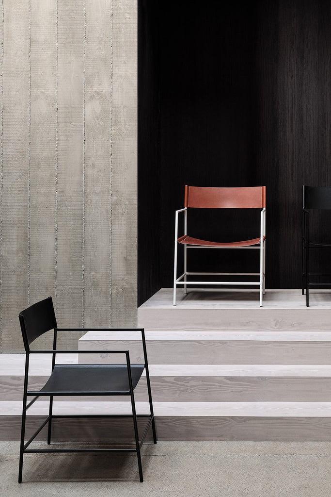 The Allingham is a contemporary interpretation of the classic director’s chair. The design suspends two pieces of sustainably-sourced, hand-stitched, black or tan Italian leather across a delicate yet dynamic metal frame. The leather will become supple over time, moulding to the contours of your body to provide a natural and relaxed seated position.