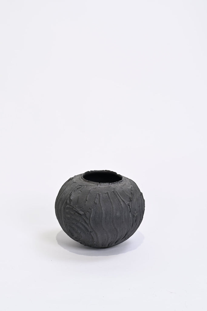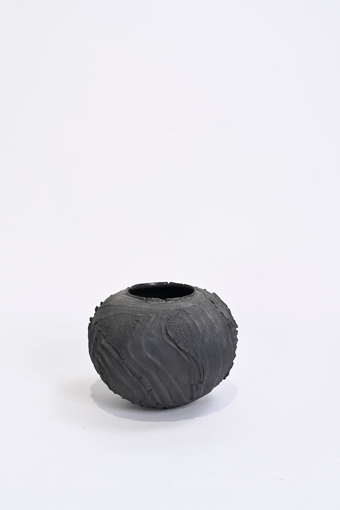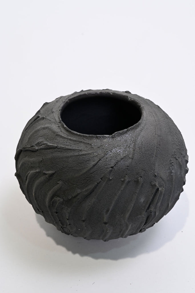 The textured surface in the Erosion series is left unglazed and takes on colour and markings during its firing in a charcoal filled saggar box within the wood kiln (also known as tanka firing). The glaze will develop bright ‘rust’ spots if exposed to moisture, this is a harmless and natural process and can be removed, if preferred, by wiping with a damp cloth.