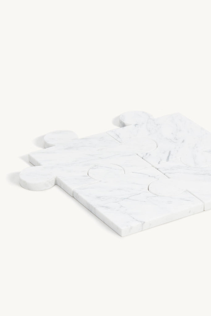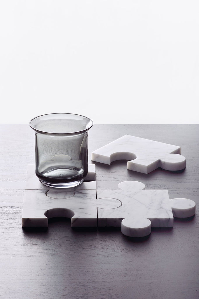 The inspiration for set of 4 stone pads was a children's creative puzzle. The genius idea lies in its simplicity. It can be used separately, as coasters, or jointly as a trivet for a hot dish on the table. The product can also function as an excellent decoration.